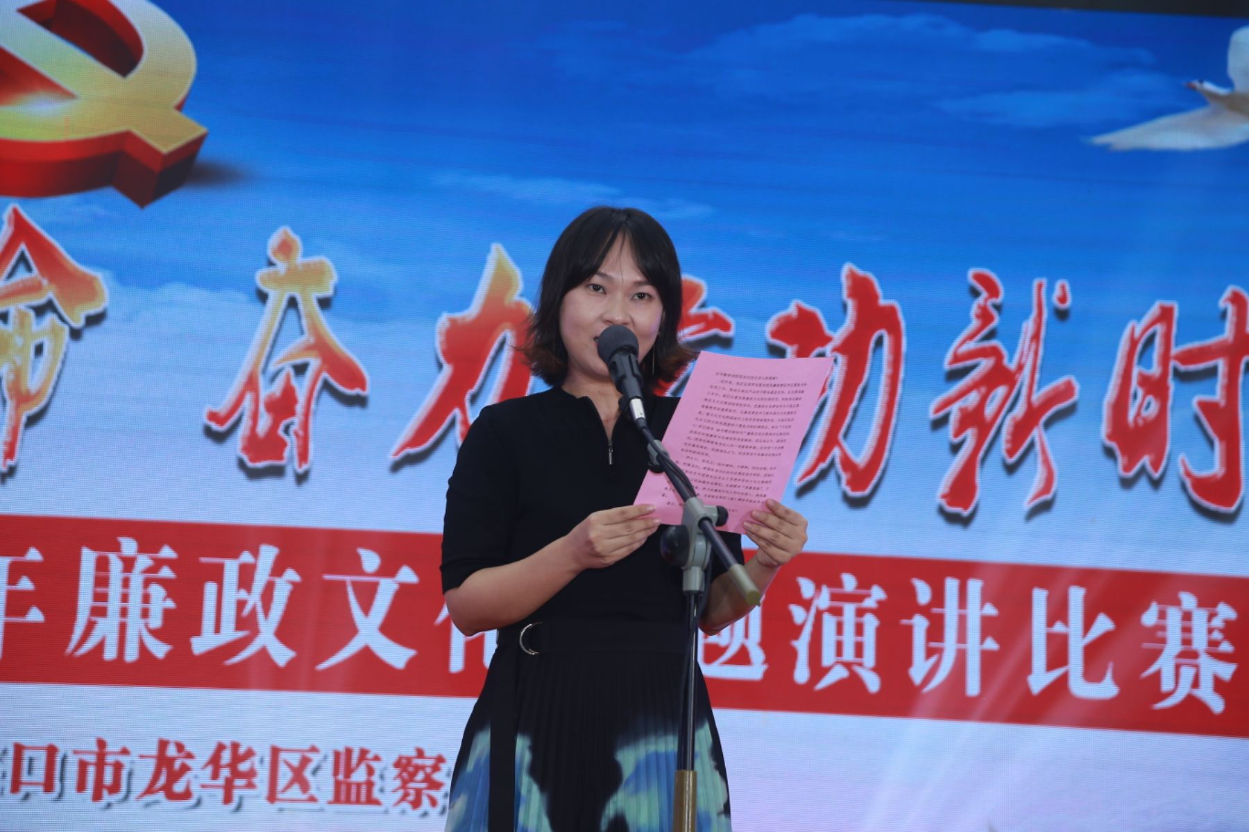 新时代提出新使命,新征程呼唤新作为。龙华区全体党员干部和公职人员将以此次演讲比赛为契机,坚持以习近平新时代中国特色社会主义思想和党的十九大精神为指引,以群众满意不满意为标准,以群众的幸福感为尺度,持之以恒加强作风建设,全面提升“清廉指数”,厚植风清气正的政治土壤,不忘初心、牢记使命,焕发新气象,展现新作为,创造无愧于时代和人民的新业绩,为海南自贸区(港)建设贡献龙华力量。