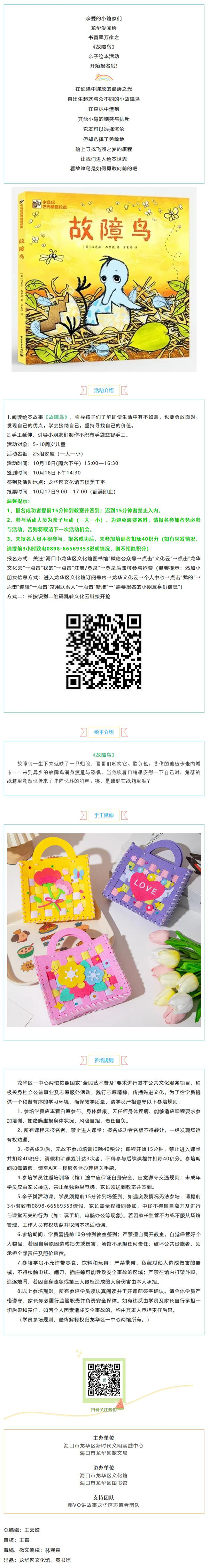 龙华爱阅绘(150)| 书香飘万家之《故障鸟》亲子绘本活动开始报名啦!