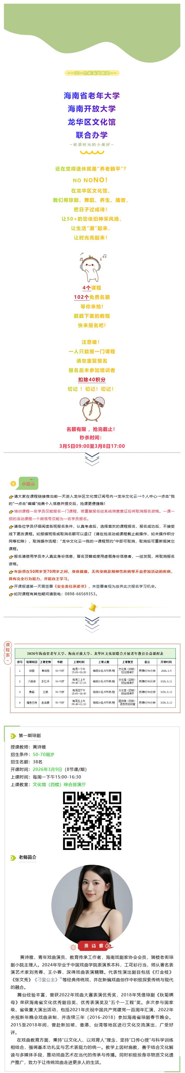 免费公益课堂|2026年海南省老年大学、海南开放大学、龙华区文化馆联合开展老年教育公益课开始报名啦!