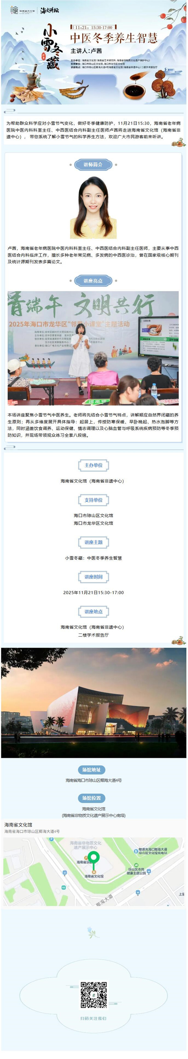 海文讲坛预告丨小雪冬藏:中医冬季养生智慧