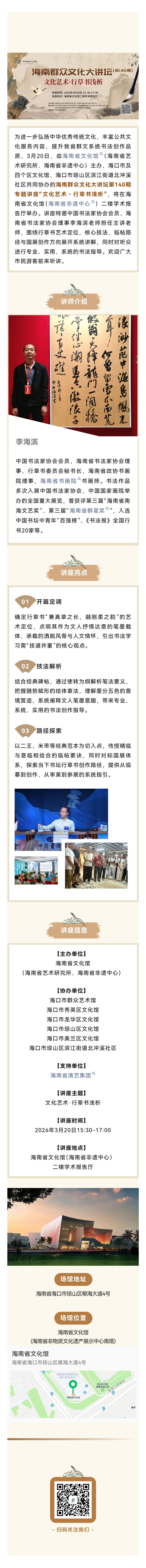 海南群众文化大讲坛第140期预告丨文化艺术·行草书浅析