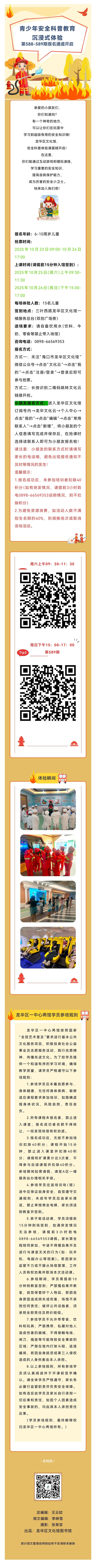 青少年安全科普教育沉浸式体验第588-589期报名通道开启~